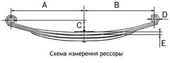 - A - расстояние от центра уха рессоры до центрального болта